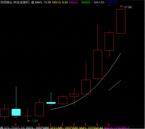 煤炭股早盘一度大涨,陕西煤业再度创出历史新高,临近上午收盘出现跳水,市值超过2600亿元。该股股价已连续6年上涨,期间最大涨幅接近9倍。资源股权重全线上扬,紫金矿业大涨超2%,逼近历史新高;中煤能源、山东黄金等个股均上涨。